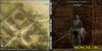 1. Поговорите с Начальником Стражи Гилбертом в Деревни Говорящего Острова.![]()