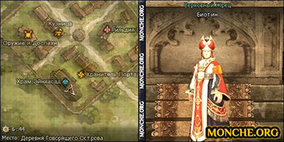 1. Поговорите с Верховным Жрецом Биотином в Деревне Говорящего Острова.